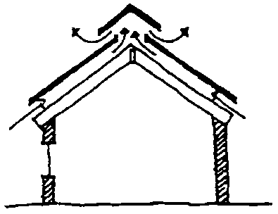 Las aberturas en el caballete (techos con pendiente), o dedujo del entrepiso suspendido o techo plano, ayudan a descargar el calor acumulado.