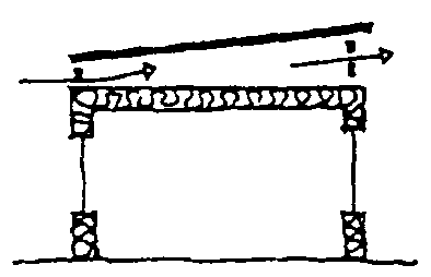 Los techos con pendientes con amplios aleros son ideales para facilitar el rápido drenaje del agua de las lluvias y para proteger y dar sombras a las aberturas y muros exteriores: deben evitarse las lima hoyas horizontales y las canales internas, ya que estos acumulan agua y suciedad.