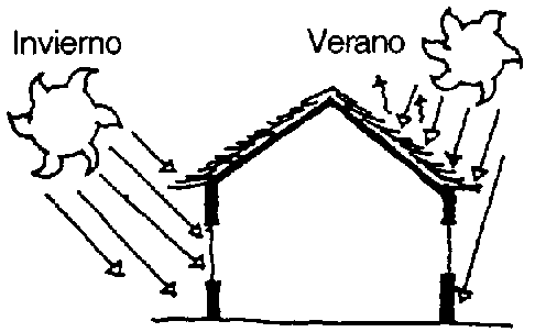 En algunas regiones es deseable evitar el sol en el verano y emplear la radiación solar para calentar las habitaciones por las ventanas durante el invierno. Este efecto puede obtenerse con un alero de techo apropiado. Su dimensión depende del ángulo de la radiación solar.