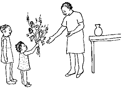 Simon and his sister Ruth went by bus to visit their uncle. As the bus was going over a bridge they heard a loud noise. The driver stopped the bus and got out. A large sack of potatoes had fallen from the roof. It had burst open, and there were potatoes everywhere on the road. Simon and Ruth helped to pick them up and put them back in the sack. The sack was so heavy that two men had to help the driver to lift it onto the roof of the bus.