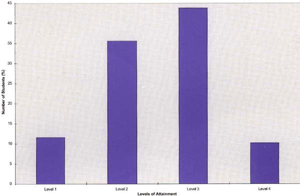 Figure 1 shows that 22 percent of children achieved Level 1. 38.8 percent of children achieved Level 2 while 27.7 percent achieved Level 3. Only 11.1 percent of children achieved Level 4.