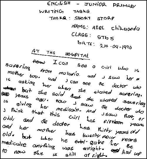 An example of a task to assess the writing of 10 year olds in Malawi is provided on the following page.