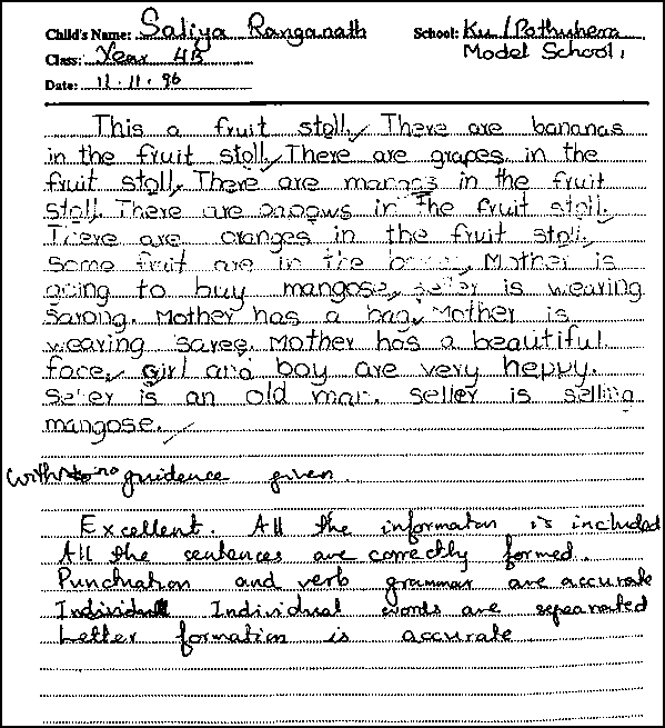 An example of a task to assess the writing of ten year olds in Sri Lanka is provided on the following page.