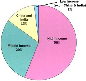 Commercial energy use refers to the use of oil, natural gas and solid fuels, but excludes the use of firewood and charcoal.FIGURE 12 - Commercial Energy Use, by Income Group of Country, 1994Source: World Development Indicators 1997.