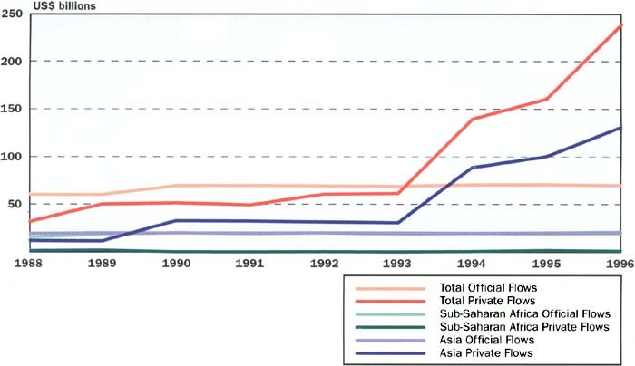 FIGURE 14 - Total Not Resources Flows to Developing Countries 1988-1996