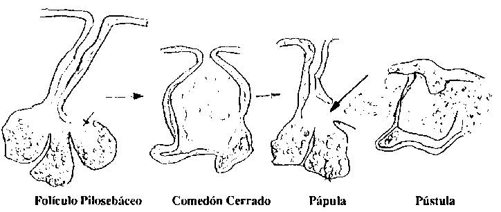 En los pacientes con acné existeuna hiperconificación en el conducto, que actuaría como bloqueador de la salida de sebo.