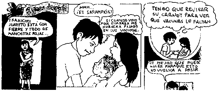 El promotor toma la temperatura (38ºC y examina al niño (esperamos que le quite la camisa al niño y encuentre todas los signos)