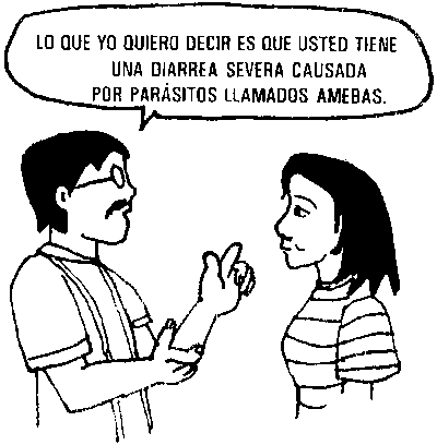 El promotor busca en su libro, hace el diagnóstico más probable y da el tratamiento apropiado y consejos preventivos.