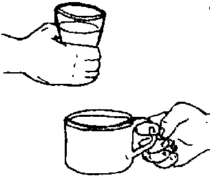 Recoger y colocar las tazas por el asa, los platos por el borde, cuidando de no tocar con los dedos el alimento.