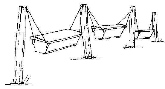 con los lados inclinados a veces cubiertos con barro. Barras superiores cortadas de un