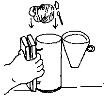 3) Cuando el combustible comienza a quemar, lentamente llene el depósito. Continúe trabajando el fuelle hasta que el combustible se quede encendido.