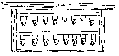 Tiras de cera se pueden hacer con una madera introducida en la cera derretida (vea el Apéndice C). Estas tiras no son estampadas, pero ésto no importa porque el objeto de las tiras es sólo de servir de guía para que las abejas comienzan a construir panal.