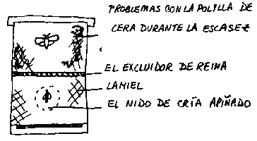Muchas veces cuando se usa el excluidor de reina en proyectos de pequeña escala para limitar la reina a una caja, no se hace nada para aliviar los nidos apiñados y limitados por miel. Esto impide el crecimiento de la colonia y causa mucha enjambrazón.