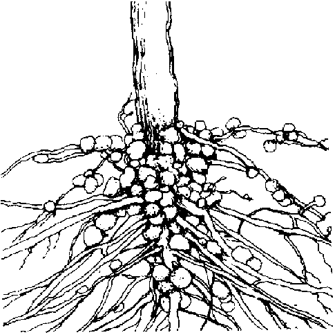 Las leguminosas obtienen el nitrógeno para sus propios requerimientos por medio de una relación simbiótica (mutualmente beneficiosa) con varias especies de la bacteria Rhizobia que forman nódulos en las raíces de las plantas. El nitrógeno es el alimento que las plantas necesitan más y también es el más costoso cuando se compra como abono químico. Las bacterias Rhizobia viven de pequeñas cantidades de azúcares producidas por la planta leguminosa y, de vuelta, convierten el nitrógeno atmosférico (normalmente no-disponible a las plantas) en una forma que se puede usar. Este proceso beneficioso se llama la fijación del nitrógeno. En contraste, los granos y otros cultivos no-leguminosos dependen totalmente del nitrógeno del suelo o de los abonos.