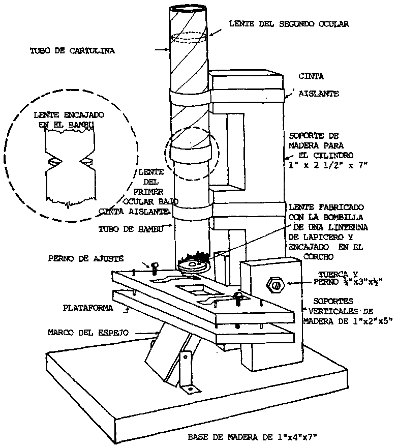 4. Un tubo de bambú de aproximadamente 8" de longitud y cuyo diámetro interior debe ser ligeramente menor que el diámetro de los lentes del ocular.