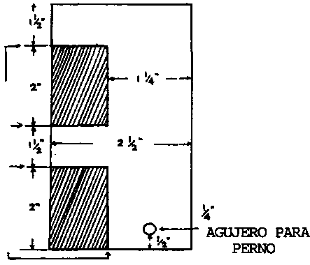 Agujeros para pernos agujeros para clavos a 1 3/4" el uno del otro