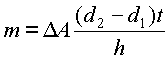 Difusión: Si la concentración (masa del sólido por unidad de volumen de solución) en una superficie de una capa de líquido es d1 y en la otra superficie es d2, el espesor de la capa h y el área en consideración A, entonces la masa de la substancia que se difunde a través del corte transversal A en un tiempo t es,
