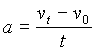 Movimiento rectilíneo uniformemente acelerado: Si V0 es la velocidad inicial, vt la velocidad después de un tiempo t, la aceleración,