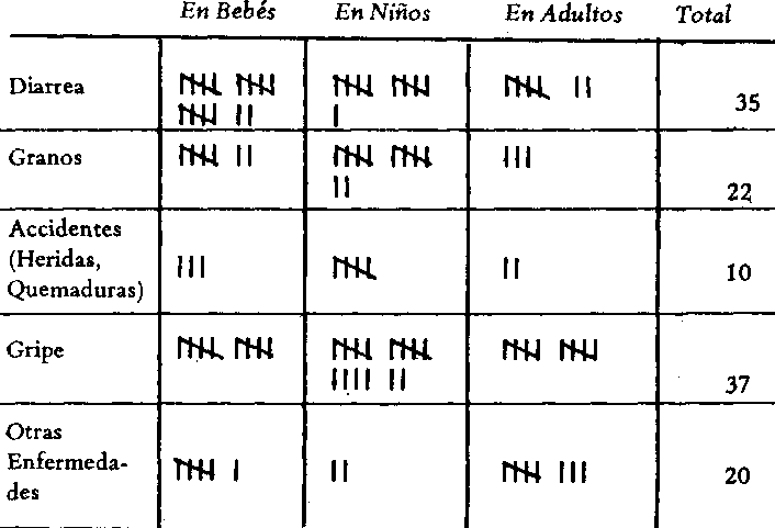 Para estudiar las enfermedades y problemas de salud comunes en la localidad, los niños pueden hacer un pequeño estudio de los problemas principales. Deben compartir la información y escribirla en el pizarrón. A continuación, unos dos ejemplos: