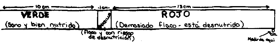 - Si mide en el verde, el niño está bien desnutrido.