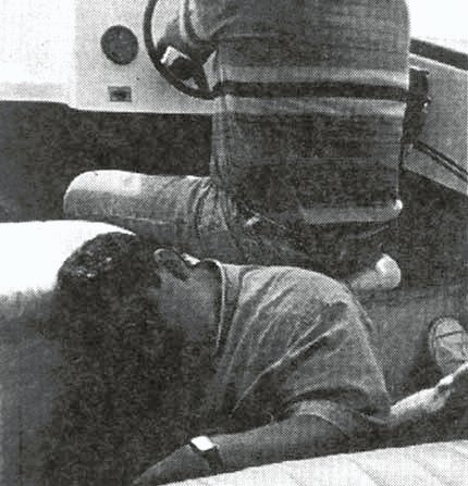 Luego del trabajo agotador en la campaña de vacunación realizado por la D.R.S. se Roquena, el Dr. Gustavo Goyzueta se tomé un descansito en el deslizador que los transportaba.