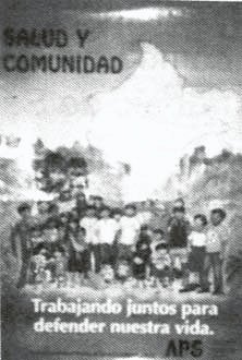 AFICHE diseñado durante el III Taller para Técnicos capacitadores-supervisores por los participantes. En este afiche podemos observar el mapa de nuestra extensa región y la ubicación de los Centros de Salud, así como el lema: "SALUD Y COMUNIDAD: TRABAJANDO JUNTOS PARA DEFENDER NUESTRA VIDA". También vemos el dibujo de un sanitario rodeado por su comunidad como muestra de nuestro deseo por trabajar y servir de cerca y coordinadamente con la comunidad.