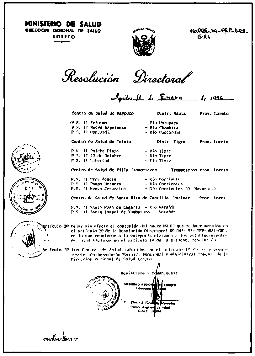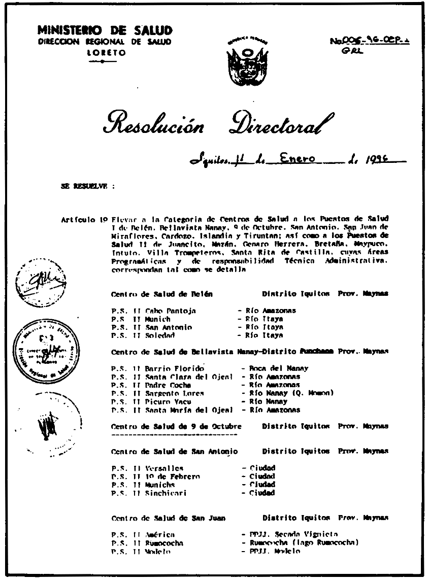 La Dirección Regional de Salud elevó al grado de Centros de Salud a varios establecimientos de Salud.