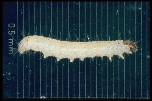 Close-up of Ephestia larva