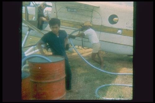 Siphoning pesticide from large drum for use