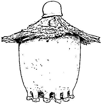 Semi-open storage structures are particularly widespread in semiarid regions. They include containers made of woven twigs or straw as well as wooden frames with a straw mat on which the commodities are placed. Crops are generally stored in an unthreshed state, i.e. in cobs or panicles. Contact to the ground is prevented by means of stone foundations so that ground moisture cannot penetrate into the store. A straw roof affords protection against the rain.