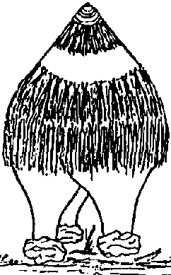 The "katchalla" is made of wood and straw. It looks like a cone which is upside down and is stabilized by wooden supports (Fig. 17). The "katchalla" has an opening at the peak of the cone which is closed by a conical roof. The storage system is not airtight, but has some ventilation.