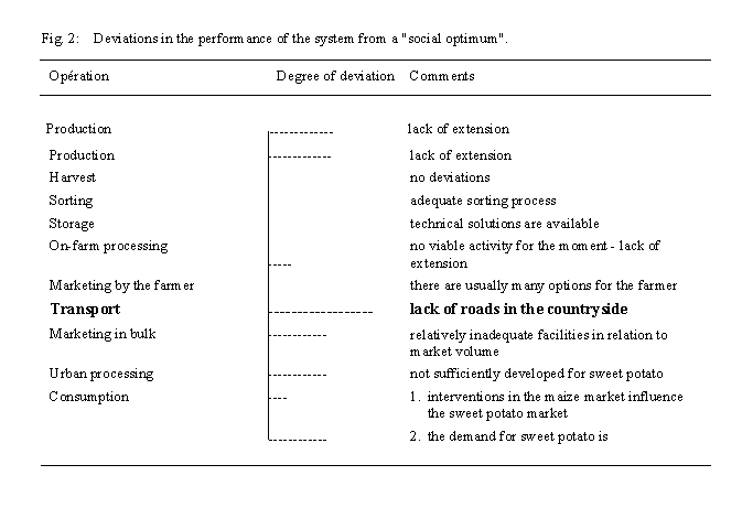 It is possible to analyse each link in the post-harvest chain by focusing on the constraints and the subsequent need for intervention. Below is an example drawn from the study carried out in Kenya (Anonymous, 1997).