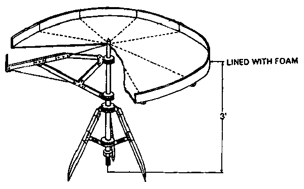 The surface of the portable sorting table illustrated below is constructed from canvas and has a radius of about 1 meter (about 3 feet). The edges are lined with a thin layer of foam to protect produce from bruising during sorting, and the slope from the center toward the sorter is set at 10 degrees. Produce can be dumped onto the table from a harvesting container, then sorted by size, color and/or grade, and packed directly into shipping containers. Up to 4 sorters/packers can work comfortably side by side.