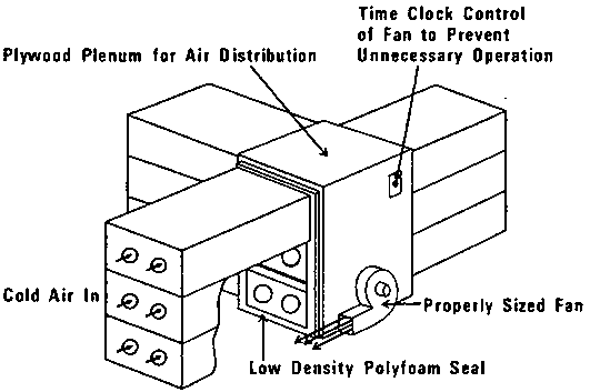 Source: Parsons, R.A. and Kasmire, R.F. 1974. Forced-air unit to rapidly cool small lots of packaged produce. University of California Cooperative Extension, OSA #272.
