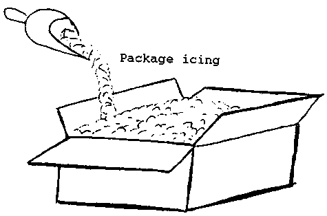 Crushed or flaked ice for package icing can be applied directly or as a slurry in water. The use of ice to cool produce provides a high relative humidity environment around the product. Package ice can be used only with water tolerant, non-chilling sensitive products (such as: carrots, sweet corn, cantaloupes, escarole, lettuce, spinach, radishes, broccoli, green onions). and with water tolerant packages (waxed fiberboard, plastic or wood).
