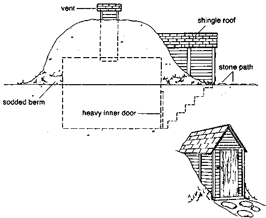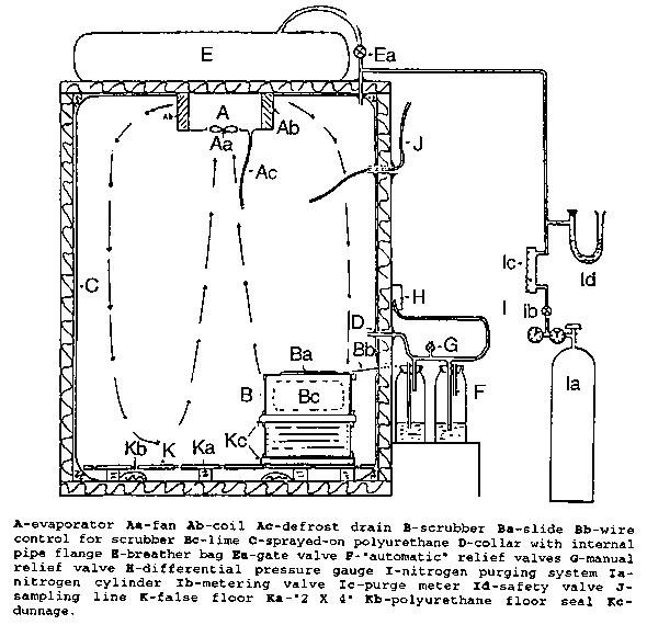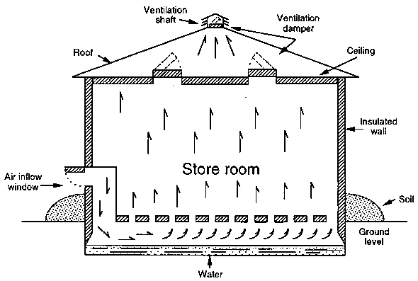 Illustrated here is a model of a small-scale commercial C.A. storage room. Each component is labelled. For farther information on construction methods, materials, and costs, please refer to the source listed below.