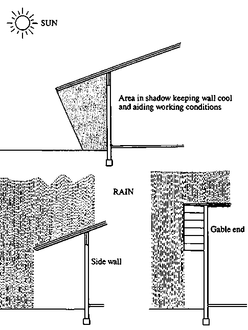 Temperature management during storage can be aided by constructing square rather than rectangular buildings. Rectangular buildings have more wall area per square feet of storage space, so more heat is conducted across the walls, making them more expensive to cool. Temperature management can also be aided by shading buildings, painting storehouses white or silver to help reflect the sun's rays, or by using sprinkler systems on the roof of a building for evaporative cooling. The United Nations' Food and Agriculture Organization (FAO) recommends the use of ferrocement for the construction of storage structures in tropical regions, with thick walls to provide insulation. Facilities located at higher altitudes can be effective, since air temperature decreases as altitude increases. Increased altitude therefore can make evaporative cooling, night cooling and radiant cooling more feasible. Underground storage for citrus crops is common in Southern China, while in Northwest China, apples are stored in caves (Liu, 1988). This system was widely used in the U.S. during the early pert of this century.