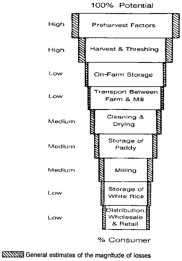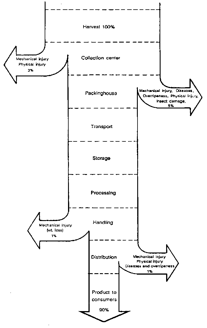An ideal food system allows a product to move from the farm to consumer, arriving at the final destination at a price the consumer is willing to pay and with only minimal losses in quantity or quality. Losses which do occur in a food system indicate inefficiencies within that particular system. In many cases, the cost of reducing a loss - e.g. using cold storage or introducing an improved container - is greater than the value of the product saved by the innovation.