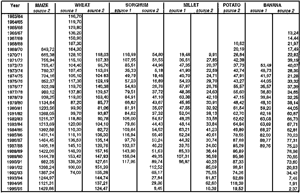Background statistics on production area of major agricultural commodities in Kenya (in 1000 kin)