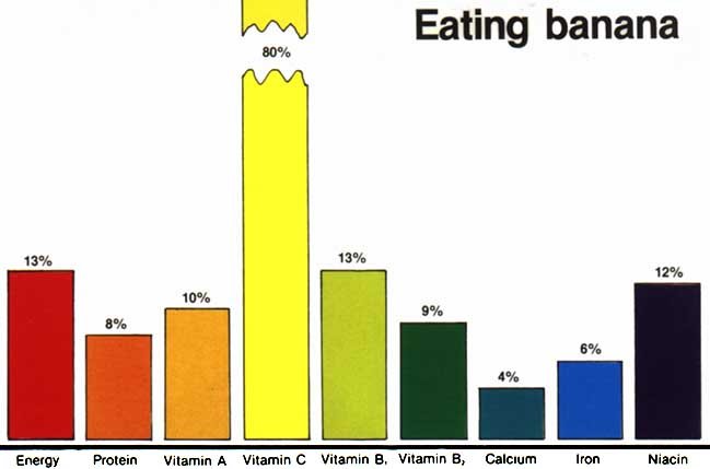 Bananas are a good source of Vitamin C, which keeps body tissues strong, helps the body use iron, and aids chemical actions in the body. They are also a good source of Vitamin A, which is needed for proper growth, healthy eves and protection from disease.