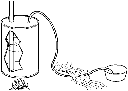 A well-cleaned oil drum is fitted with a pipe to carry away the vapour, and a safety pipe. Alcoholic liquor is placed inside the drum and heated. On vaporization, the alcohol vapour is carried out of the drum via the pipe and passed through cooled air or cool water. The distillate condenses and is collected.