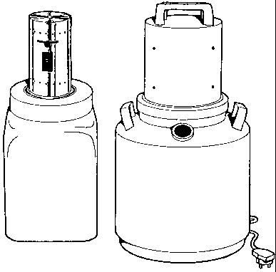 This is a two-headed bottle washing machine driven by a 0.19kW (0.25hp) single-phase motor. It is supplied with four nylon brushes (two are spare) for washing inside bottles. A large brush is also provided for cleaning exteriors. Inside and outside are washed simultaneously. There are two tanks; one for hot water and one for cold.