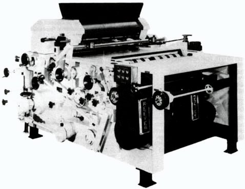 These continuous machines are used to coat foods in chocolate, batter or other coating materials. The food passes on a wire conveyor belt through a curtain of coating material.