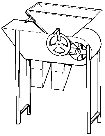 Designed for paddy, this is a compact freestanding model, fabricated from mild steel and operated by cranking a handle, which is connected by pulley and V-belt to the fan.