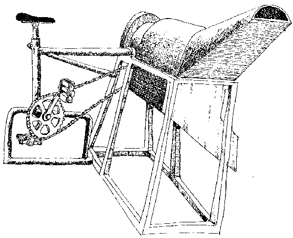 The bicycle-operated slicer is a modified version that developed by the Society for Development of Appropriate Technology (SOTEC) in Bareilly, India.