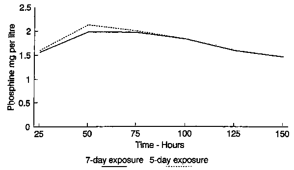 Graph 3 Phosphine fumigation - Dar es Salaam (Dosage rate 2g/tonne)