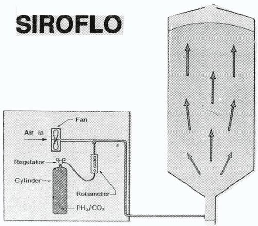 One of main advantages of this technique is that it works on storage bins which are not fully gastight, so sealing and other modification costs can he reduced. If SIROFLO is used as soon as the silo is tilled, the system can eradicate any insects imported with the grain, thus making management of grain stocks a much simpler operation.