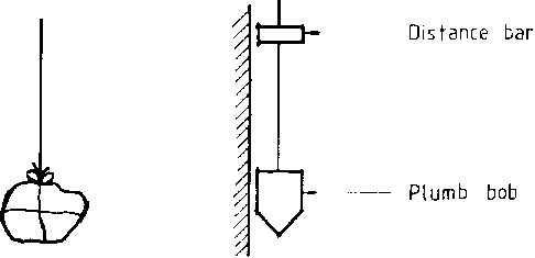 A surveyor's plumb line consists of a sturdy cord, a distance bar and a conically shaped plumb bob with a hardened steel point. It is used for positioning surveying instruments or when stepping with a tape or chain. It may also be used to check the vertical alignment of foundations, walls and posts. A simple plumb line for these latter jobs can be made from string and a stone.