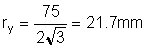 b = least dimension of cross section, r = radius of gyration