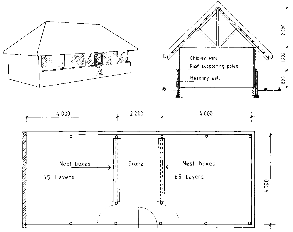 Figure 10.38 Poultry shelter for 50 layers.